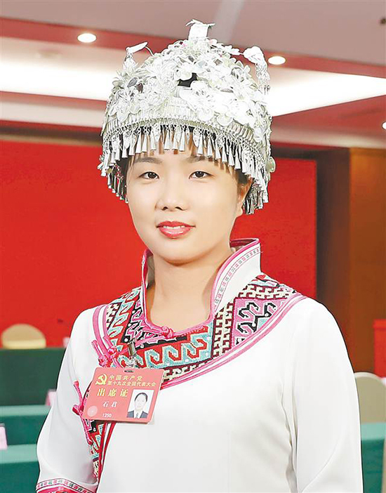 穿著一身土家族民族服飾,亮相十九大的石君格外引人注目。然而,比起外表來,她的經歷更讓人眼前一亮:作為出席十九大的五名大學生村官黨代表中的唯一一名90后,石君的履歷不凡:大學畢業后先做了服務西部計劃志愿者,后又成為一名大學生村官,扎根重慶市石柱縣沿溪鎮陡巖村。
