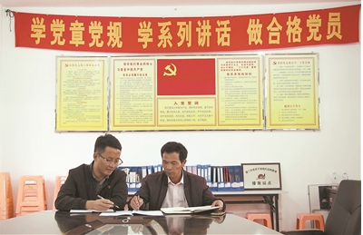 陳炯茂(左)與村書記楊明福一起學習十九大報告。