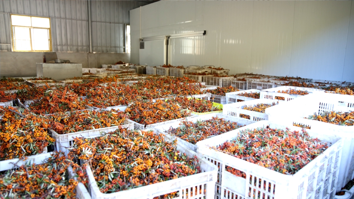 武山縣榆盤鎮蘇家村沙棘加工廠沙棘等待脫果。侯向陽 攝