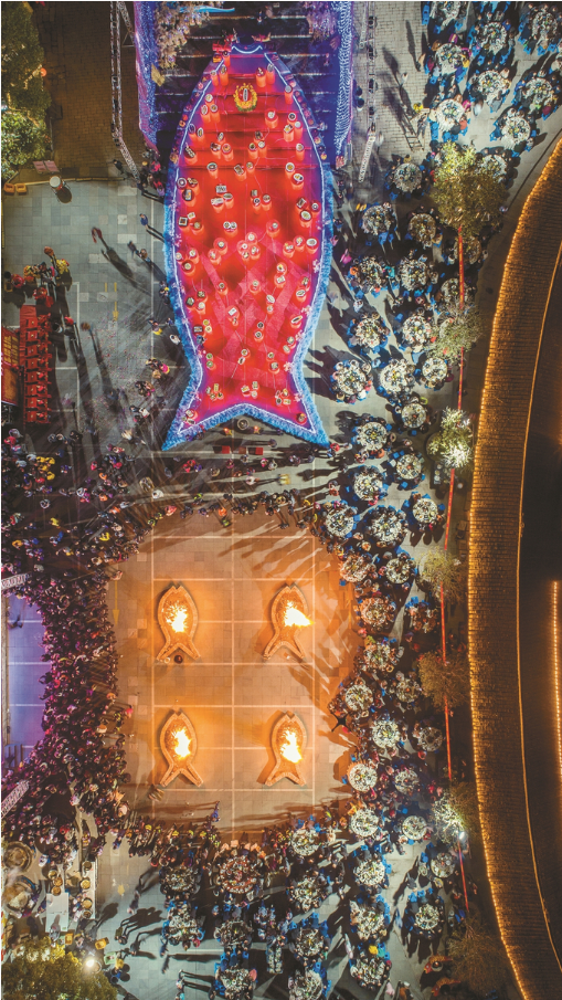 荻港村的“魚文化節”燈火展演。(荻港村村委會供圖)