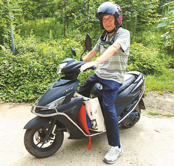 自去年秋天以來,陜西省安康市漢濱區關廟鎮包灣村的山路上,經常可以看到一名中年男子騎著一輛半新不舊的摩托車,車座前總掛著三個包:一個裝著筆墨紙硯的塑料包、一個記滿民情筆記的帆布包,還有一個裝著政策文件的公文包。