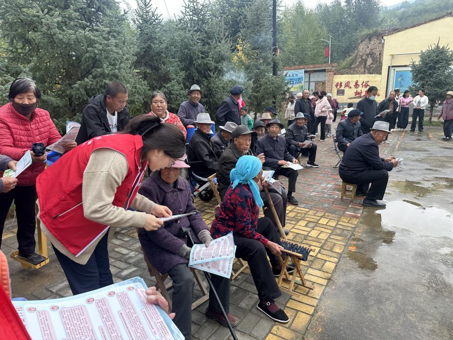 巨淑英(左一)在為村民們宣講政策。受訪者 供圖