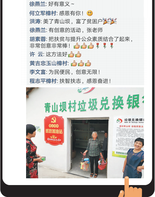 讓我們一起到青山壩村第一書記張利姿的朋友圈看一看,村民們是怎么拿垃圾兌換“金子”的!