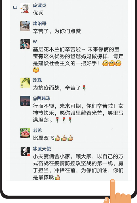 李曉彤說,他們兩口子只是千千萬萬個基層干部中的一員,堅守在鄉(xiāng)村戰(zhàn)“疫”一線的“夫妻檔”不勝枚舉。
