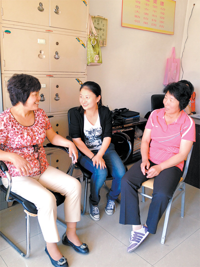 東麗區(qū)大學(xué)生村官與村民交流談心。