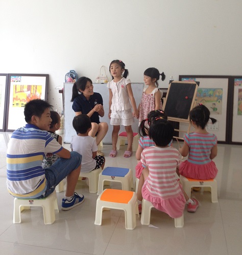 在百靈鳥驛站,袁琛祎非常活躍,在2013年暑期,她每次都給孩子們組織活動,看到有幾個小朋友比較內向,她就主動去打招呼,并給他們介紹好朋友。為了進一步促進大家的認識,她組織了“我是小老師”活動,讓每一個小朋友當一回老師,過一把老師癮,“輪到小寶當老師了,來,上來……”,袁琛祎不停的組織著,活動逗得大家開懷大笑,她也成了一群“小老師”們的老師,孩子當中的“孩子王”。整個暑期,她還組織了畫畫、唱歌等多項活動。